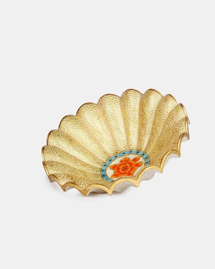 This beautiful bowl is made entirely of marble and decorated with bright colours in the Meenakari technique. This is a perfect choice for home décor and can be used to keep dry fruits and other food items. This cute bowl can also be gifted at housewarming parties.